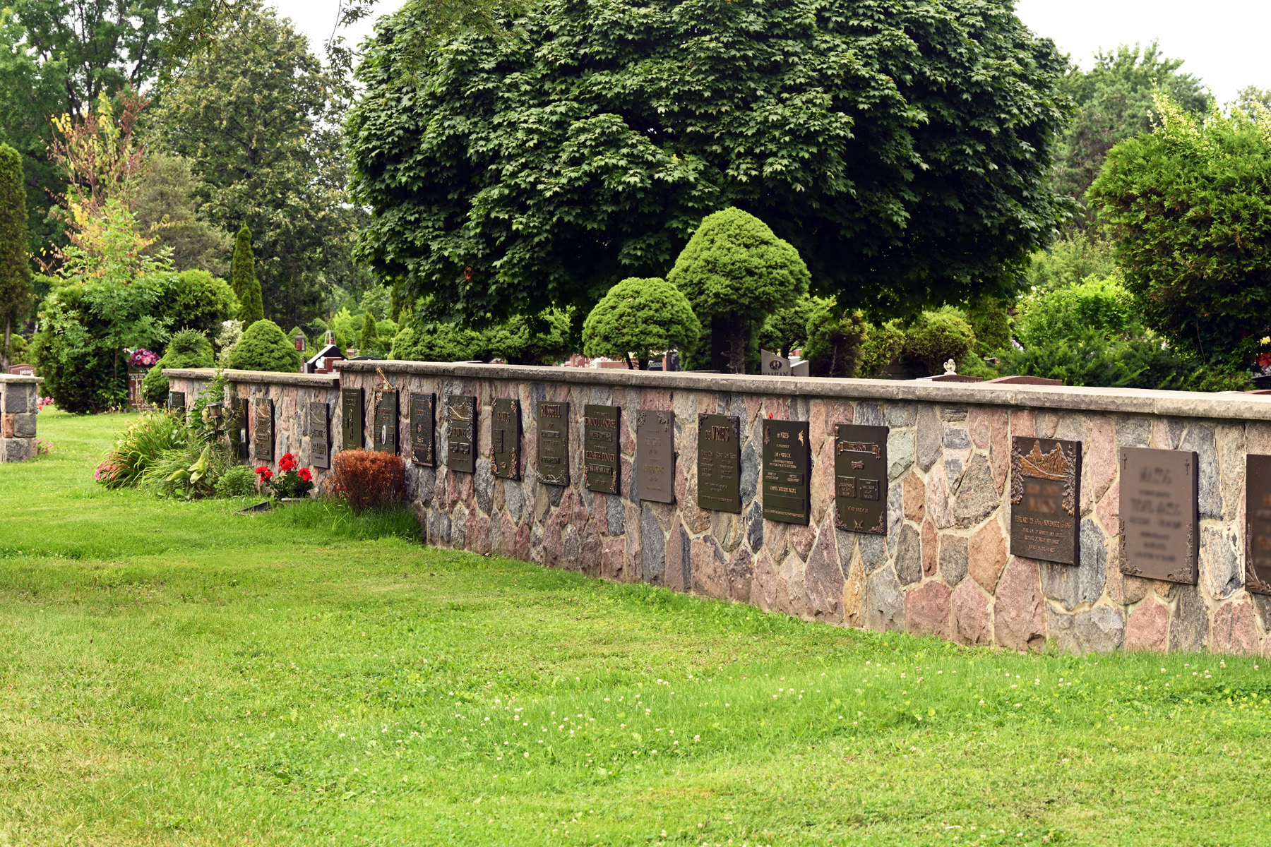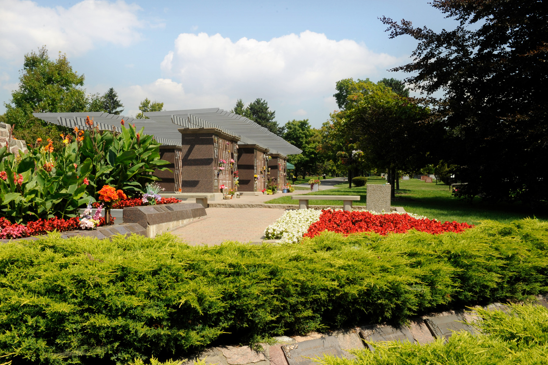 - Bronze-fronted columbarium niches set within beautifully landscaped areas for quiet reflection