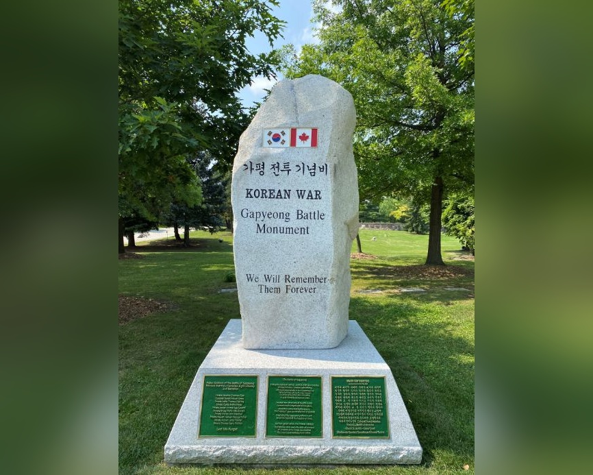 In 2021, Meadowvale Cemetery unveiled the Gapyeong Battle Monument, a solemn tribute to one of Canada’s most significant military engagements since the Second World War – the 1951 Battle of Gapyeong that took place during the Korean War. For two days in April, the 2nd Battalion Princess Patricia’s Canadian Light Infantry (PPCLI), alongside Australian and New Zealand forces, held their ground against overwhelming Chinese attacks. Outnumbered nearly seven to one, these soldiers prevented a breakthrough toward Seoul, a stand so heroic it earned the battalion the rare United States Presidential Unit Citation – a distinction shared by only a handful of Canadian units in history.