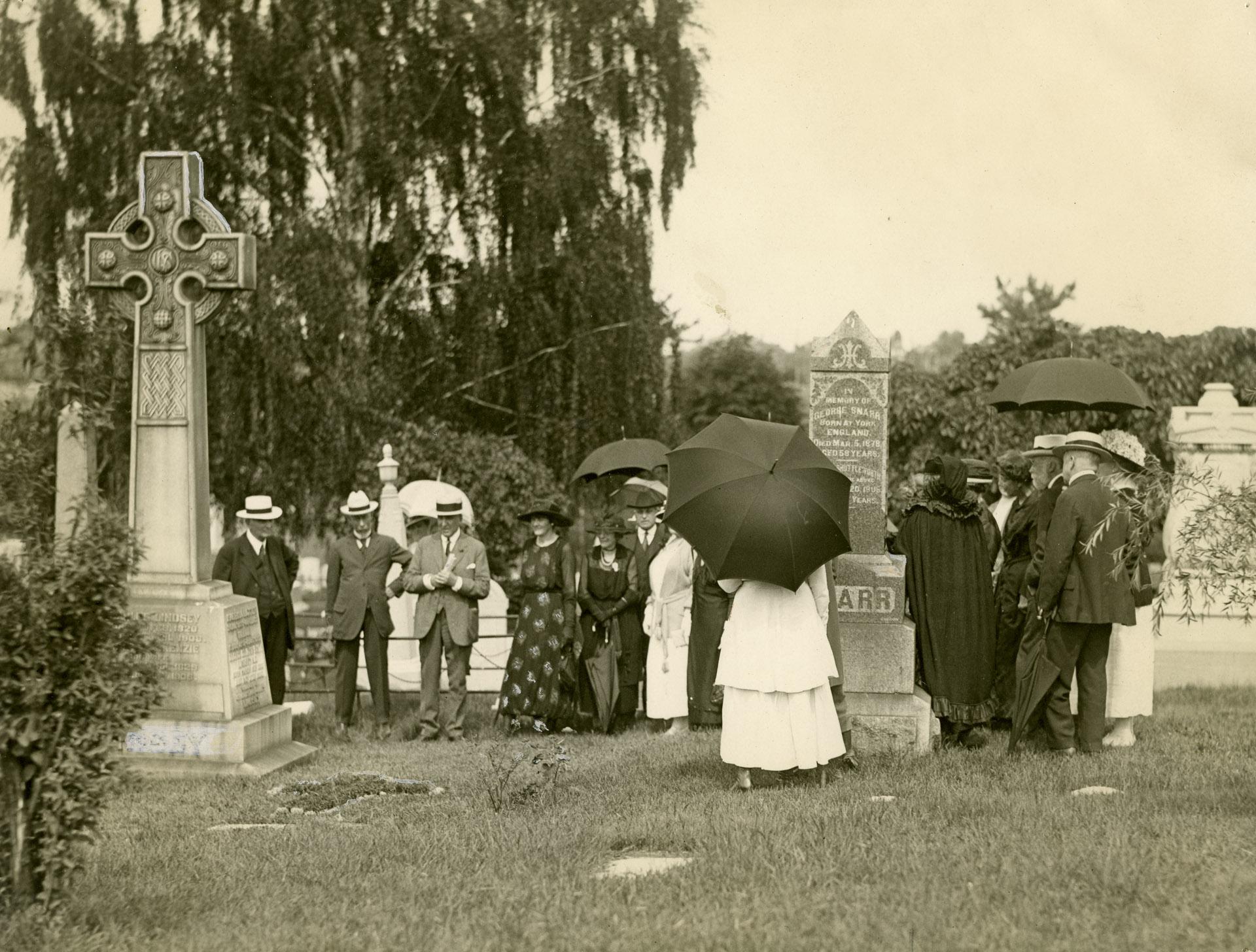 • Group shot at gravestone - Public domain, Toronto Public Library